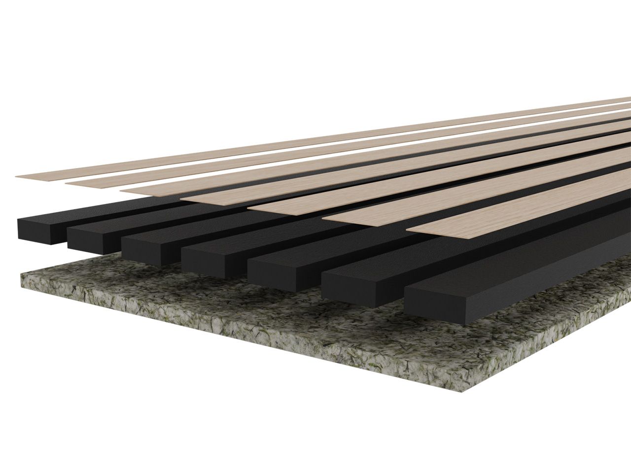 Cechą szczególną naszego panelu Upcycled Turf jest filc, który jest wykonany w 65% z przetworzonej sztucznej trawy, ciętej na małe kawałki, a następnie przetworzonej w filc, któremu nadaje piękny i niepowtarzalny wygląd. Ponadto, lamele są montowane z okleiną z prawdziwego drewna z przodu. Oznacza to, że mogą wystąpić różnice w wyglądzie okleiny, ponieważ drewno jest materiałem naturalnym.