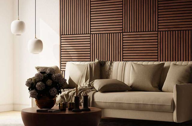 W BY VENØ produkujemy w Danii ekologiczne panele akustyczne z certyfikatem FSC®, skrupulatnie zaprojektowane w celu wzbogacenia akustyki pomieszczenia. Panele akustyczne GreenOption oferują tę samą niezwykłą wydajność akustyczną, co zawsze, a teraz są dostępne w jeszcze bardziej zrównoważonym materiale z niezwykłym podkładem filcowym pochodzącym w 65% z recyklingu.