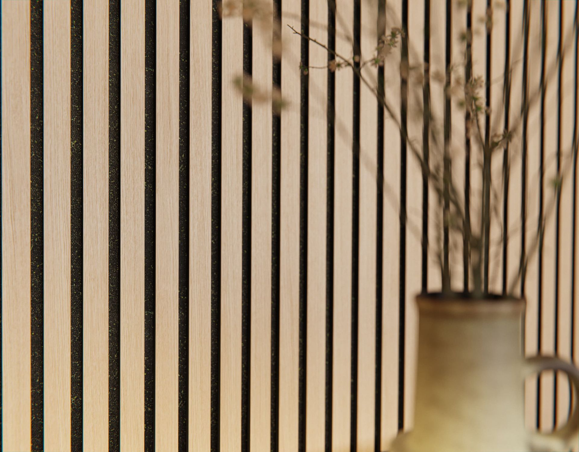 Cechą szczególną naszego panelu Upcycled Turf jest filc, który jest wykonany w 65% z przetworzonej sztucznej trawy, ciętej na małe kawałki, a następnie przetworzonej w filc, któremu nadaje piękny i niepowtarzalny wygląd. Ponadto, lamele są montowane z okleiną z prawdziwego drewna z przodu. Oznacza to, że mogą wystąpić różnice w wyglądzie okleiny, ponieważ drewno jest materiałem naturalnym.