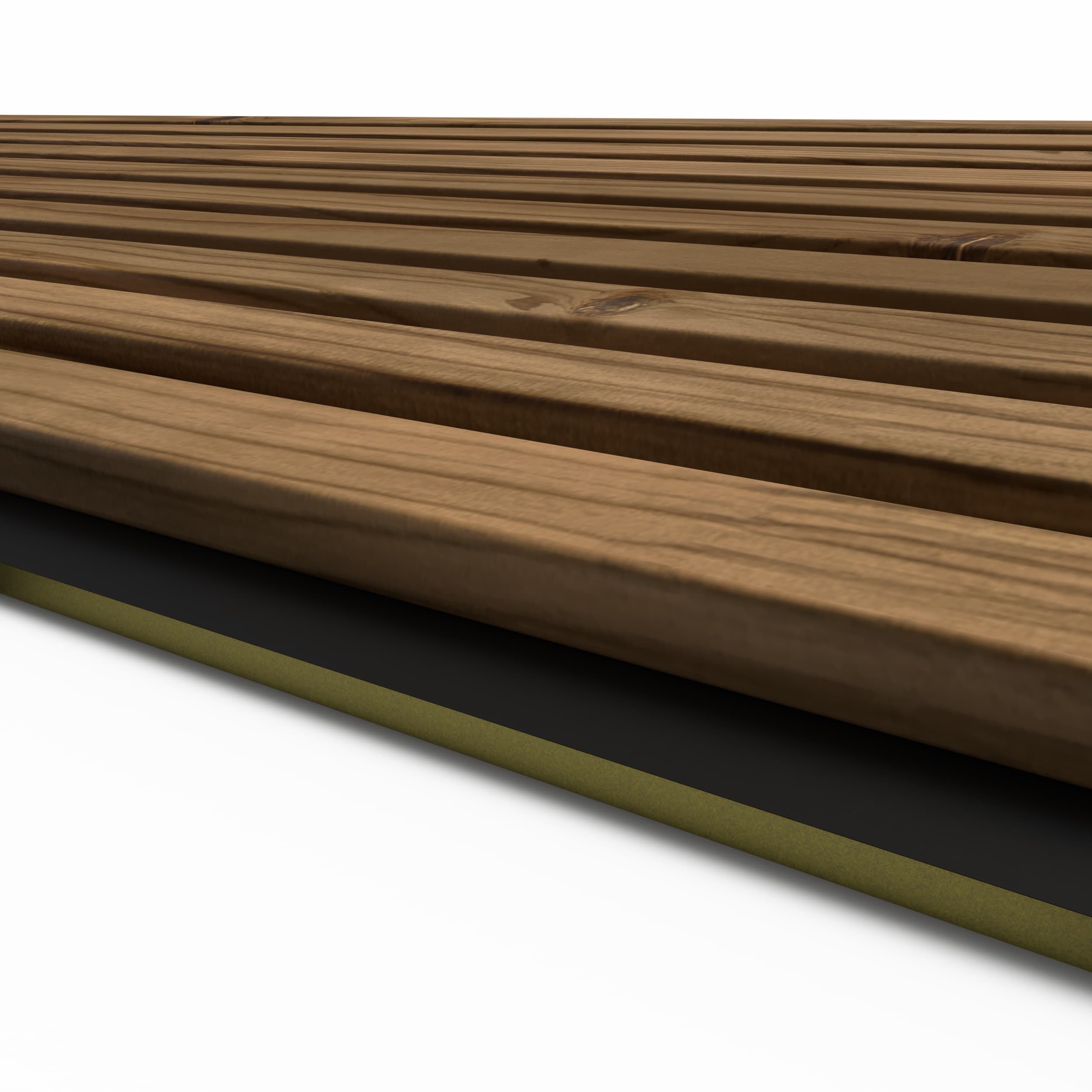 Nordic Outdoor panele dekoracyjne zostały opracowane z myślą o zadaszonych przestrzeniach zewnętrznych, takich jak tarasy, wiaty samochodowe i balkony. Łączą estetykę z funkcjonalnością i są wykonane z trwałych listew ThermoWood, zamontowanych na odpornej na wilgoć warstwie filcu. Panele dekoracyjne tworzą harmonijny i spójny wygląd, dodając głębi i ciepła Twoim zadaszonym przestrzeniom zewnętrznym.